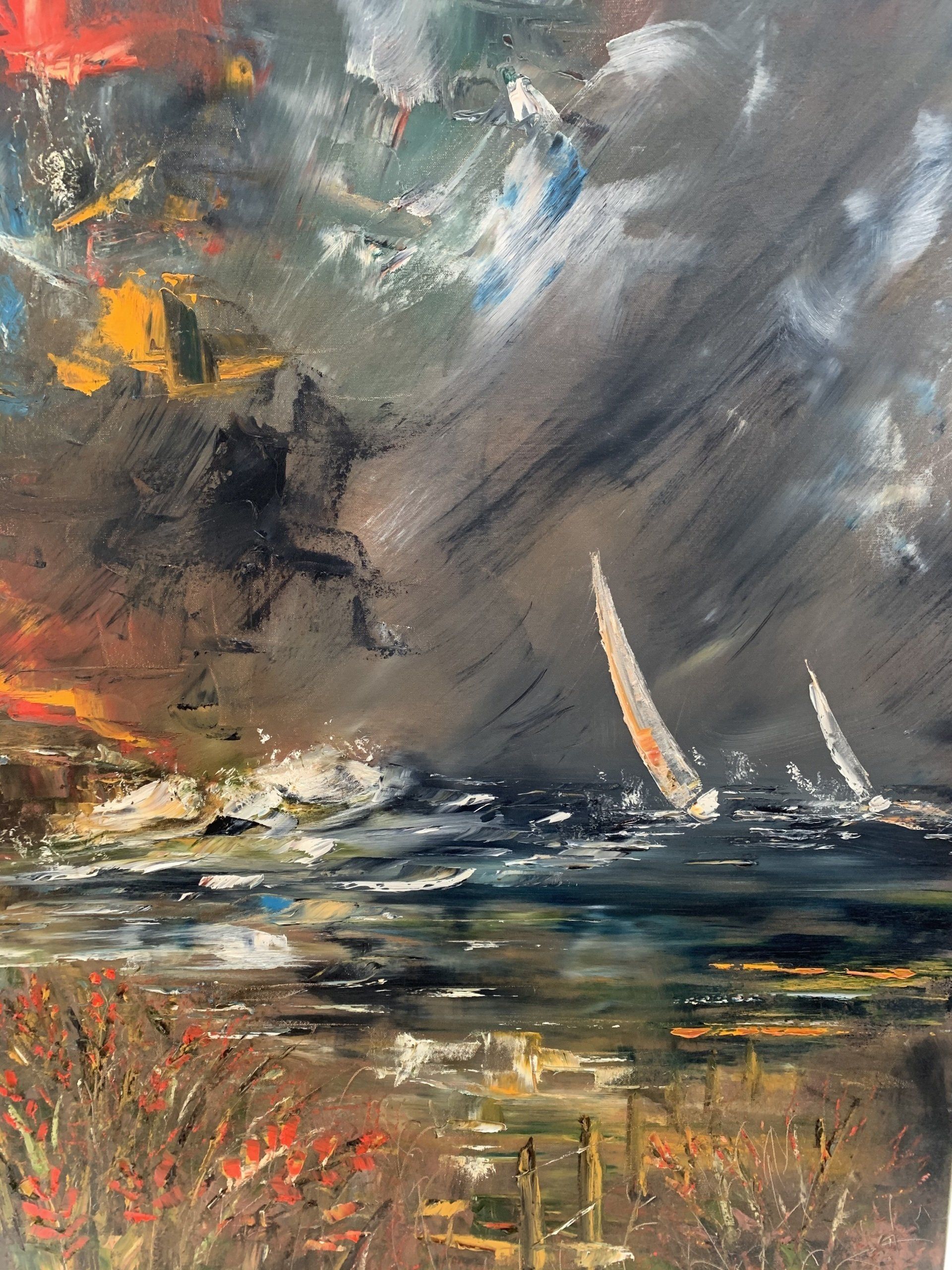All paintings are oil on canvas, ranging from 40x50cm to as large as 122x106cm. They are all semi abstract views of seascapes, sailing, crofting and landscapes. Painting are available from Hatton House Art Gallery, Bridge Street, Dunkeld, Scotland or contact Mairi directly for more info mairi@shieldaigcroft.com